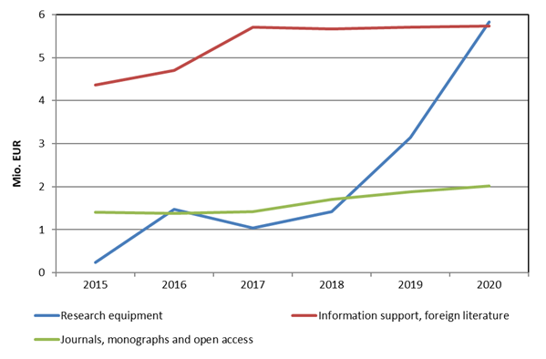 Funds for research equipment, information support, foreign literature, and journals and monographs