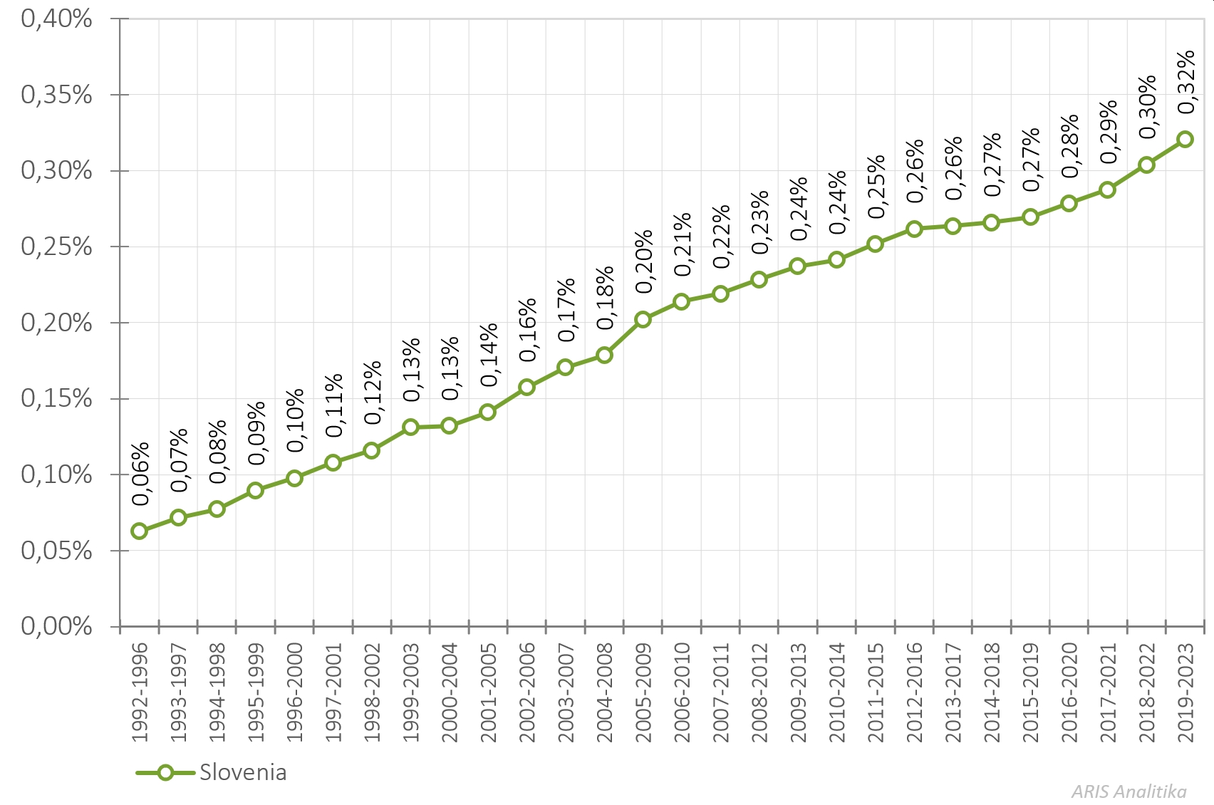 The proportion of the number of Slovenian citations relative to the number of OECD citations