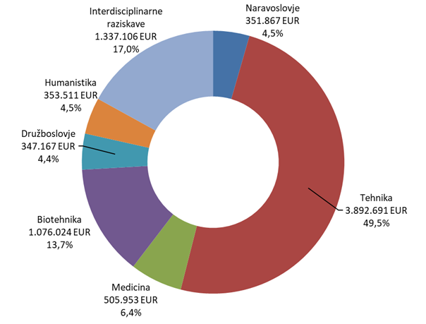 Sredstva za aplikativne projekte po raziskovalnih vedah v letu 2022