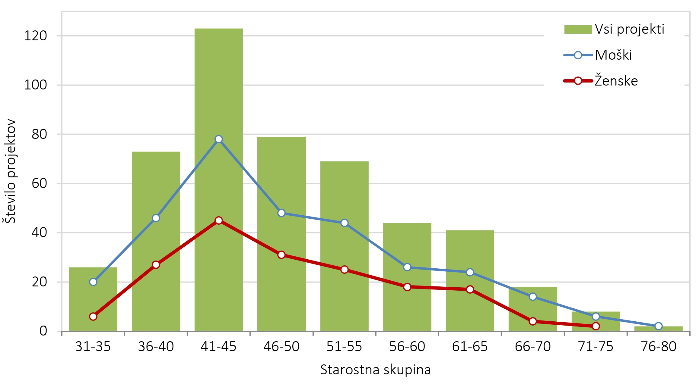 Najmlajši vodja temeljnega projekta je bil star 31 let in najmlajša vodja je bila stara 33 let. Najstarejši vodja temeljnega projekta je bil star 77 let in najstarejša vodja pa je bila stara 72 let.
