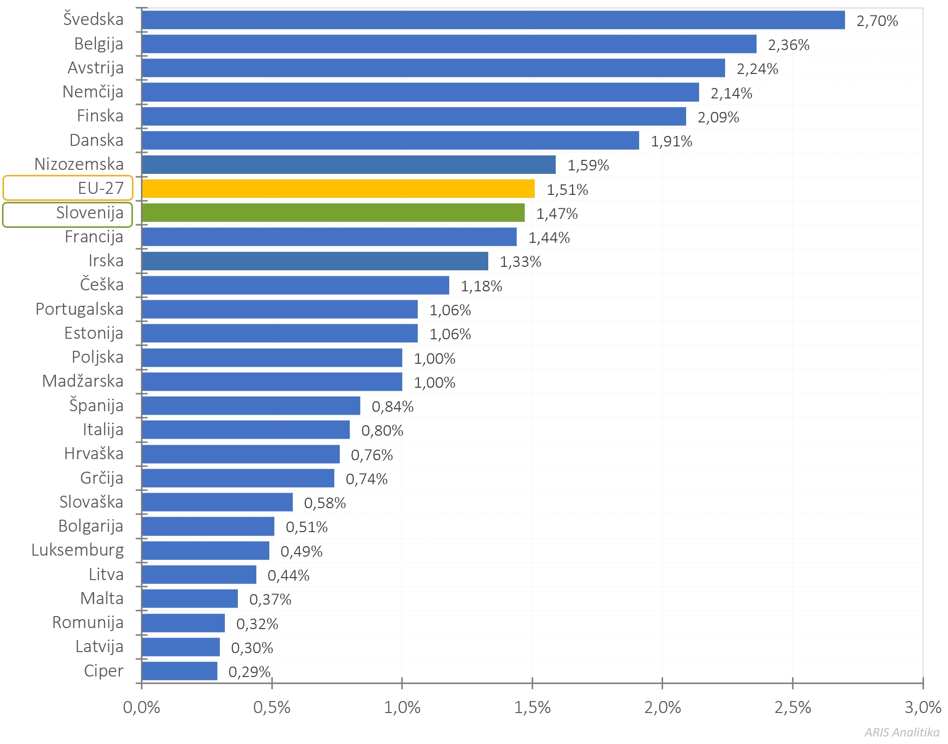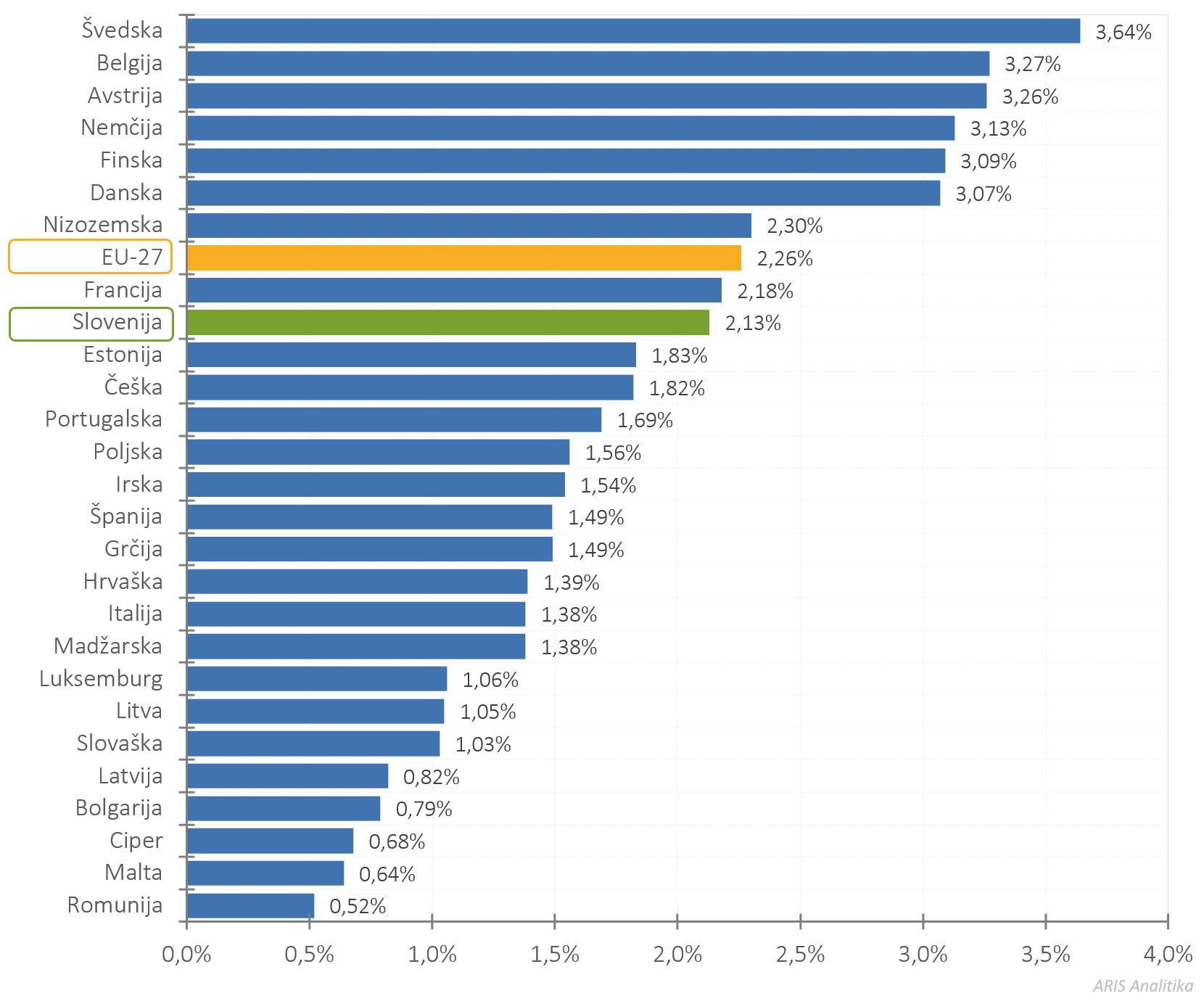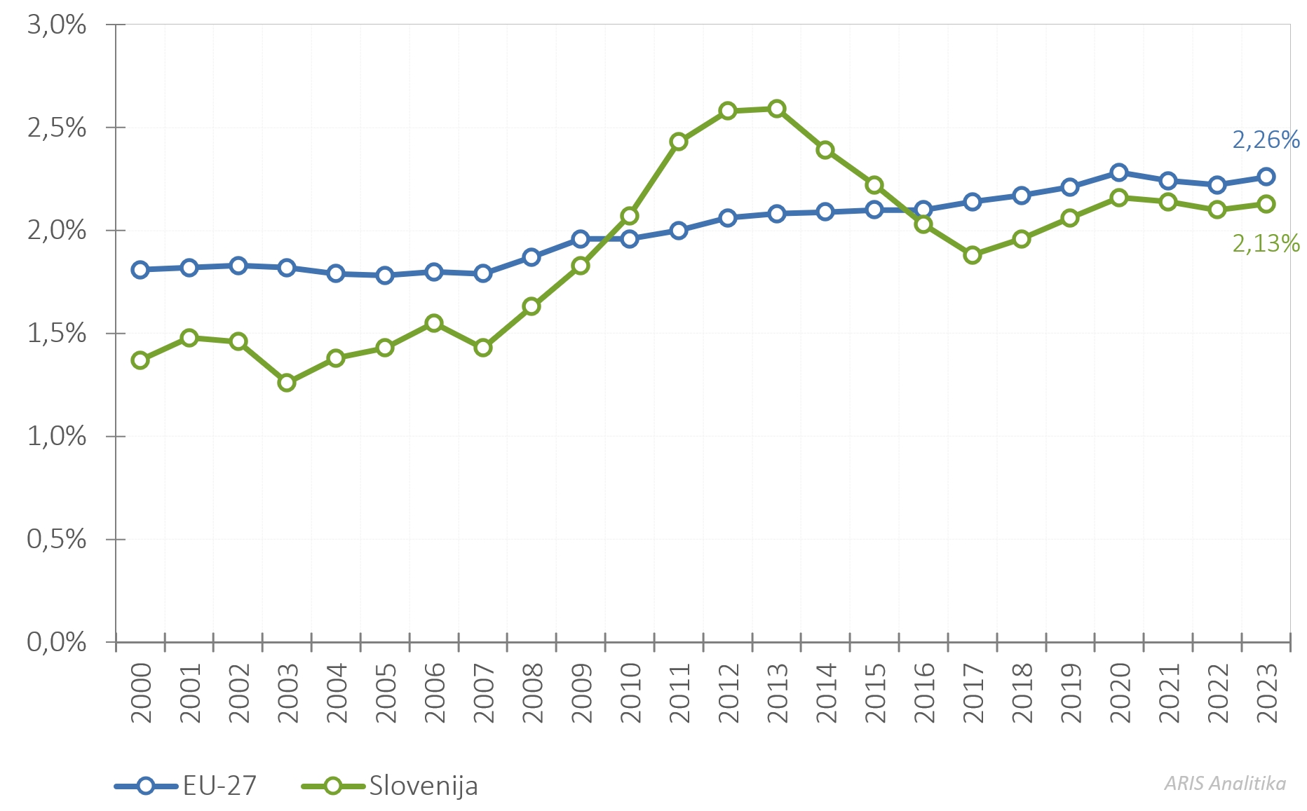 Vlaganja v RR po sektorju izvedbe: za poslovni sektor Delež RR v BDP v letu 2023
