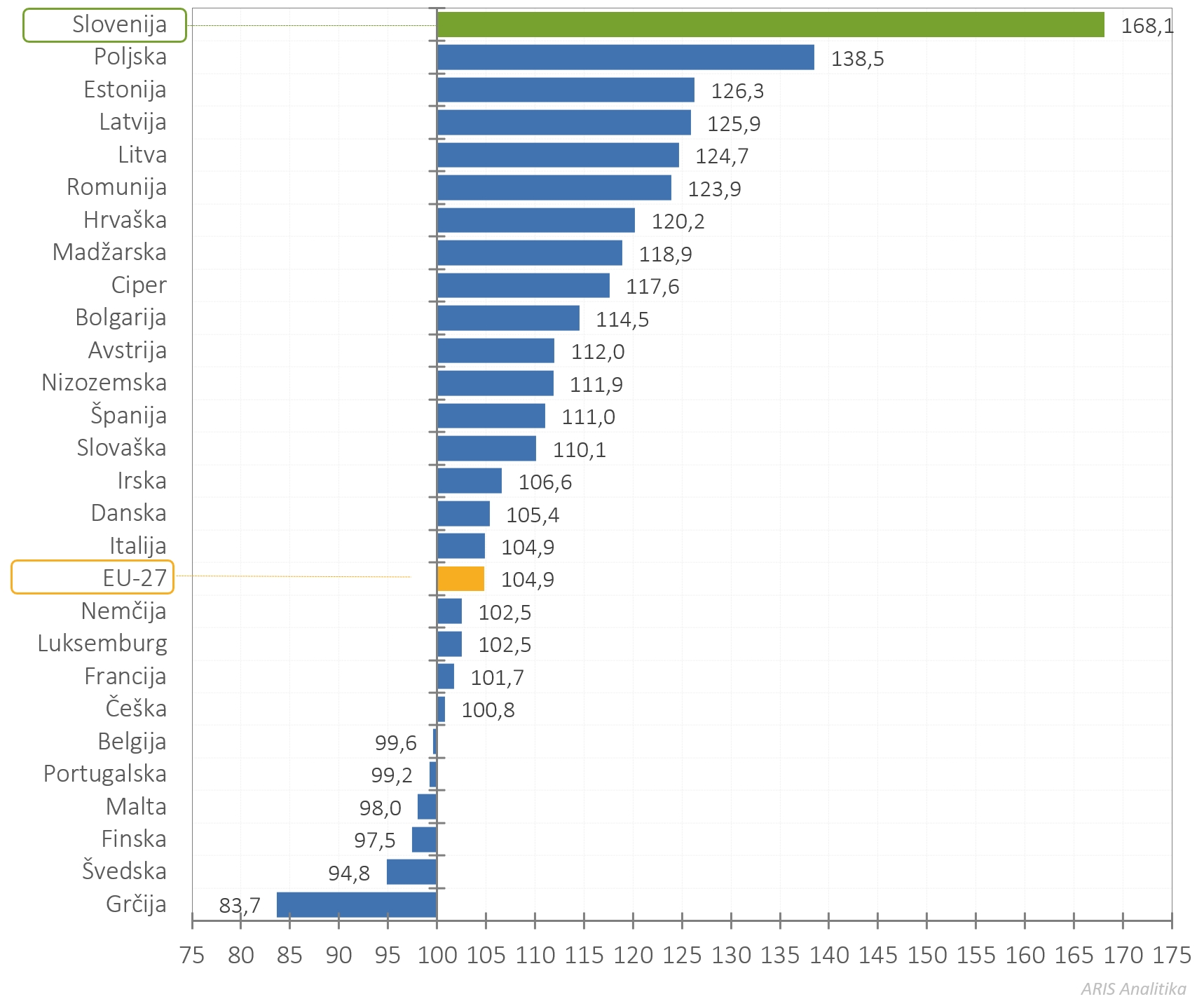 Državna proračunska sredstva za RRD na prebivalca Indeks (2023/2022)