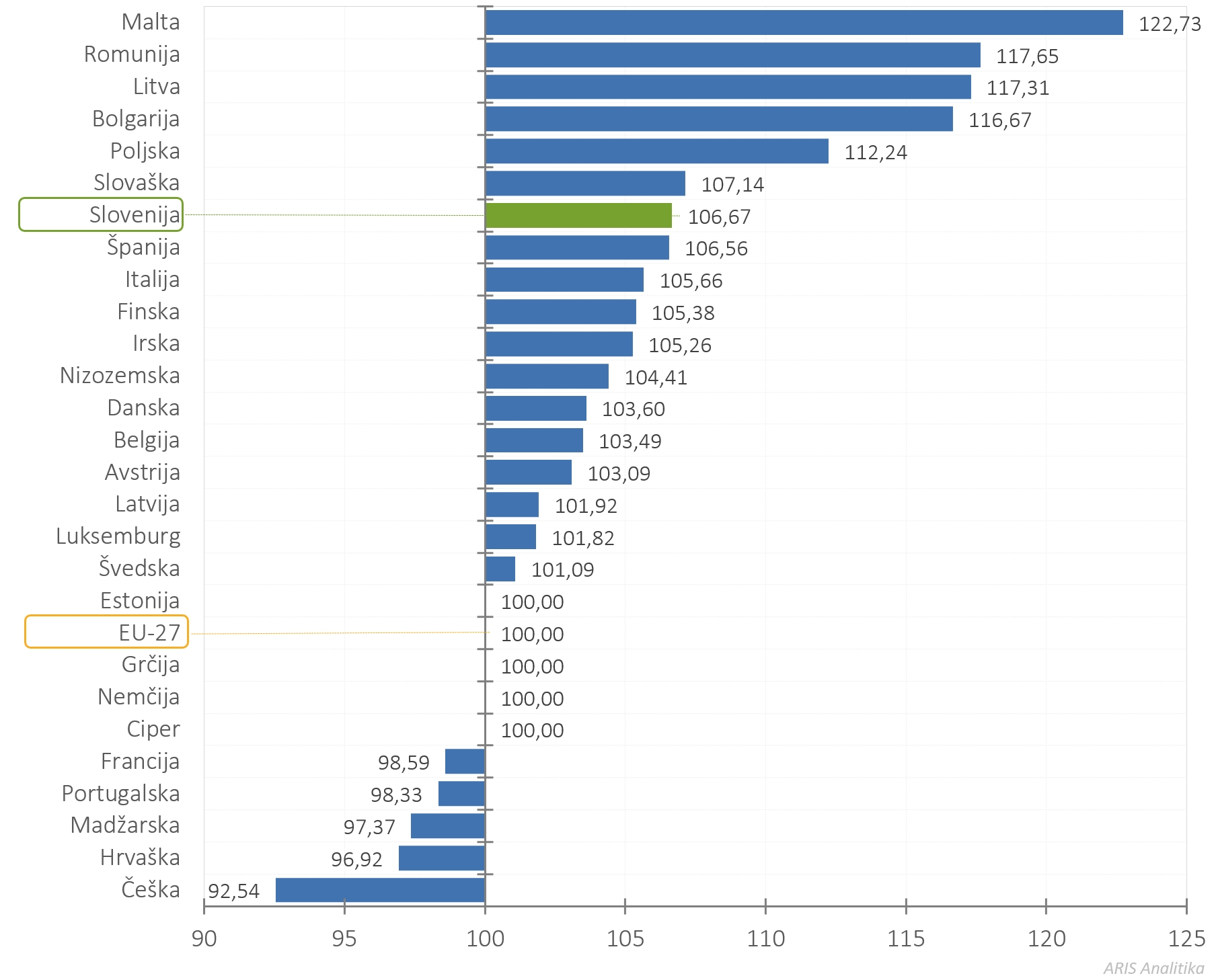 Vlaganja v RR po sektorju izvedbe: za državni in visokošolski sektor v % od BDP Indeks (2023/2022)