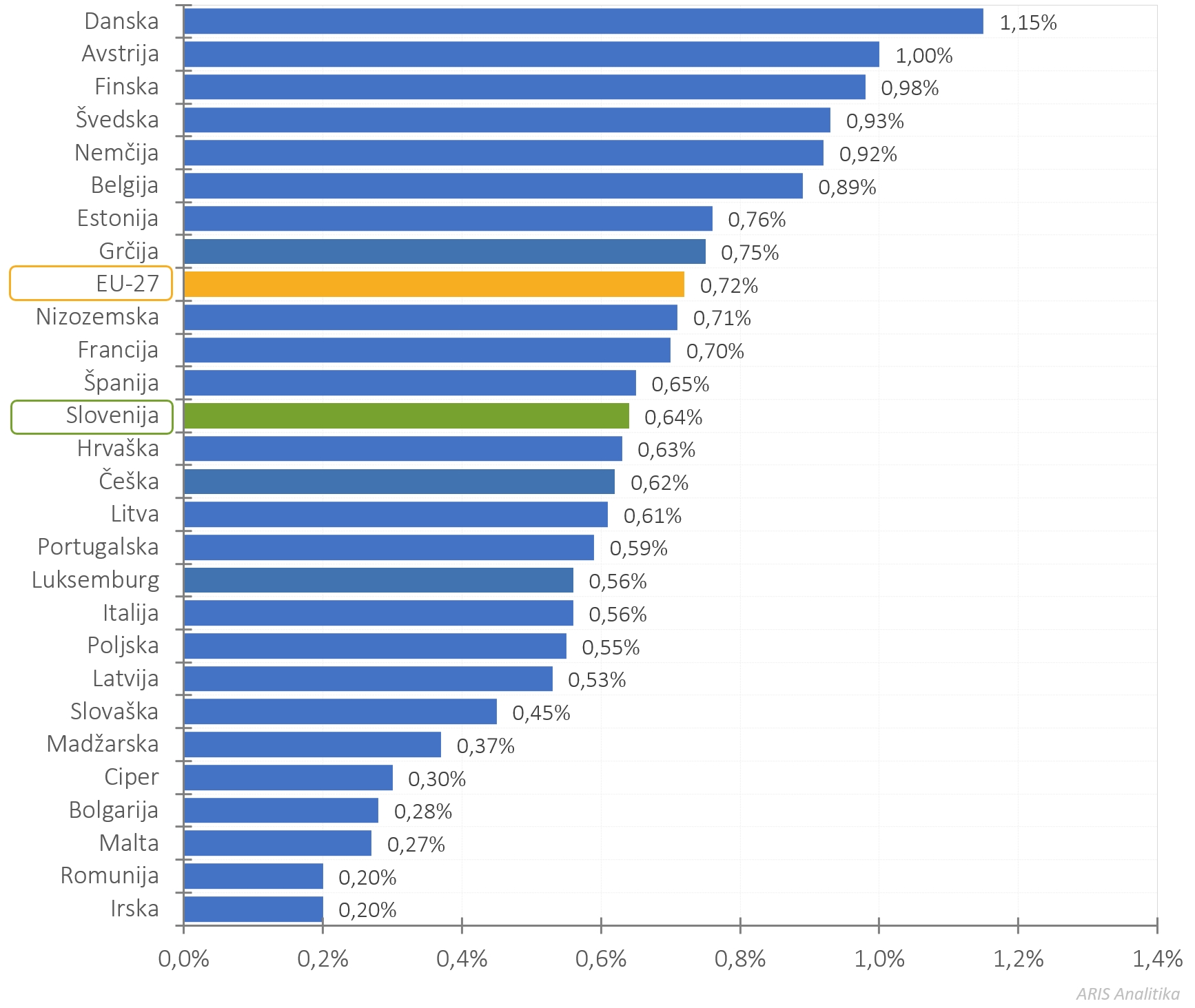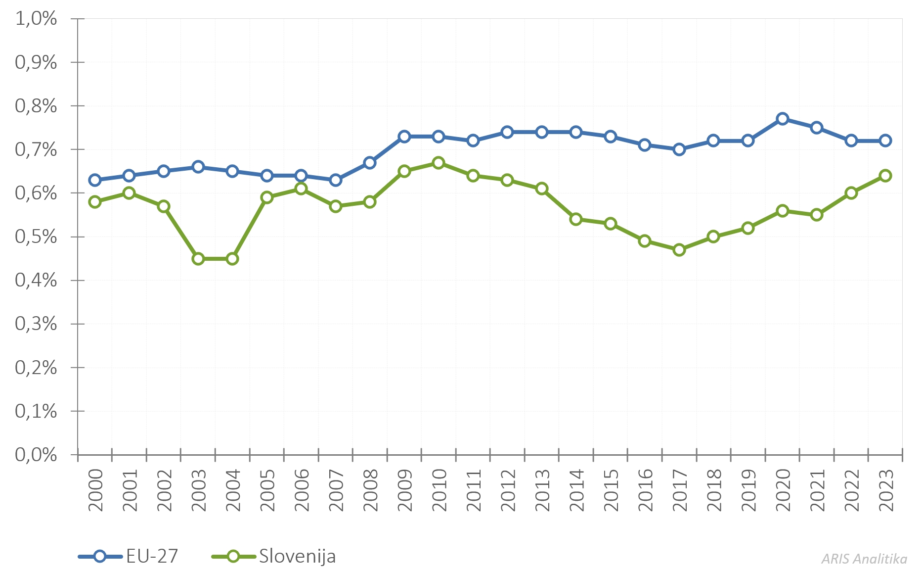 Vlaganja v RR (GERD)% BDP po sektorju izvedbe: za državni in visokošolski sektor — 2023 |