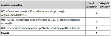 spodnje tabele (izpis ZZZS po zavarovalnih podlagah), izpolnjuje navedeni